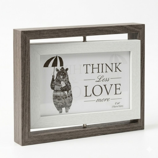 O Porta-Retrato Duo Frame não é apenas um suporte para fotos, é uma peça de design interativa. Com um sistema giratório central, ele permite que você visualize sua foto favorita de forma dinâmica, criando um efeito "flutuante" dentro da moldura externa. É a escolha perfeita para quem busca sair do óbvio na decoração.